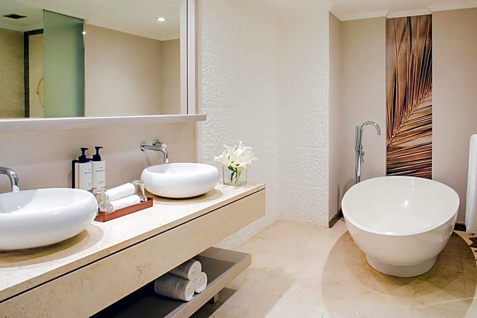 Featuring a large terrace with sun loungers overlooking the Indian Ocean, this 984 ft² suite is just steps from the beach and tropical gardens. This suite offers a kitchen, living room and a hot tub in the private bathroom. It has a mezzanine floor with a bed, flat-screen TV and seating area.